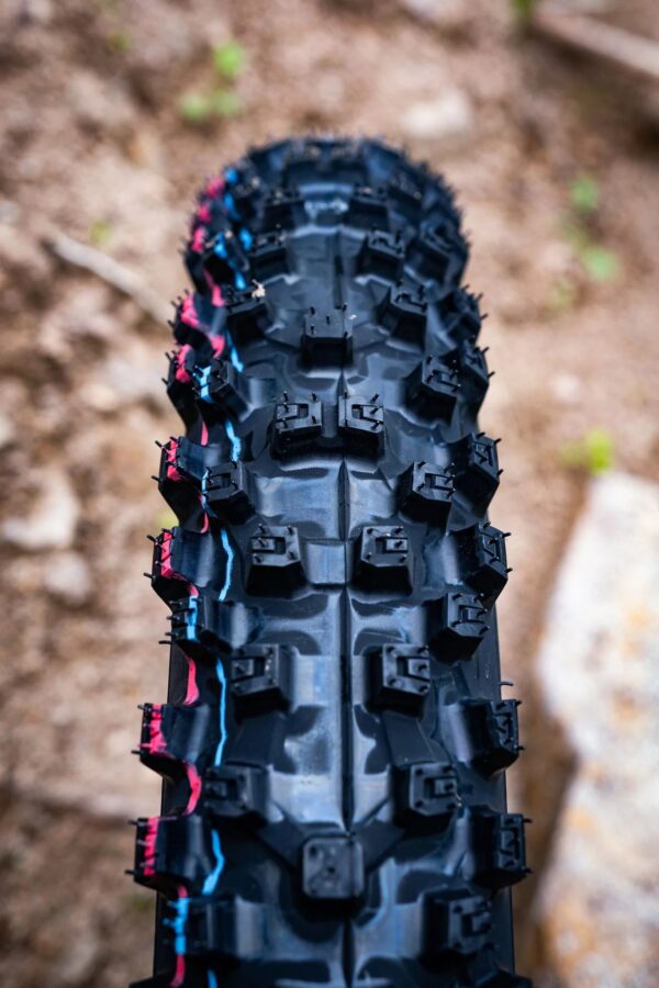 Les crampons du MX33F garantissent une adhérence exceptionnelle sur la roue avant, ainsi qu'une absorption des chocs améliorée, offrant une traction remarquable sur la roue arrière. Ainsi, les problèmes courants tels que la perte d'adhérence, la perte de puissance ou les pincements de chambre à air dus à une pression basse sont désormais de l'histoire ancienne.